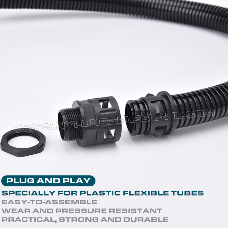 Đầu nối ống hệ mét M12-M63, nối thẳng đầu nối ống và ốc siết cáp bằng nhựa cho ống mềm AD10~AD54.5 là một loại thiết bị kết nối được sử dụng rộng rãi trong điện,hệ thống cung cấp chất lỏng và khí. Nó có hiệu suất niêm phong cao và được sử dụng đặc biệt để kết nối các đường ống sóng. Nó có thể duy trì kết nối an toàn và đáng tin cậy trong quá trình vận chuyển nhiệt độ cao,áp suất cao và chất lỏng hoặc khí ăn mòn.