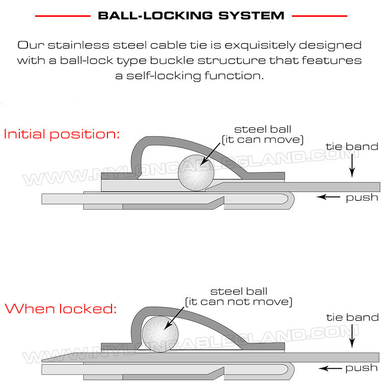 (1) Vật liệu chất lượng cao - được làm từ thép không gỉ 304, 316 hoặc 316L, bề mặt của đai kim loại được phủ bằng epoxy, polyester hoặc nhựa và có thể chịu lực kéo tối đa 490lbs.