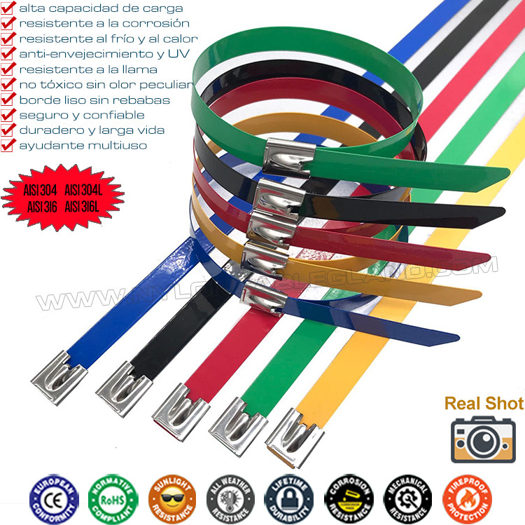 Dây thít cáp bằng thép không gỉ có lớp phủ là loại dây buộc cáp bằng kim loại có bề mặt được phun nhựa, toàn bộ bề mặt của dây đai cáp thường được phủ một lớp vật liệu nhựa (epoxy, polyester, PVC hoặc nylon). Lớp phủ có thể cung cấp sự bảo vệ bổ sung cho dây buộc cáp và làm cho nó chống ăn mòn hơn, chống mài mòn hơn và đẹp hơn. Loại dây buộc cáp này được sử dụng rộng rãi để cố định và buộc trong các lĩnh vực hệ thống điện, công nghiệp hóa chất, hàng hải, dầu khí, v.v.