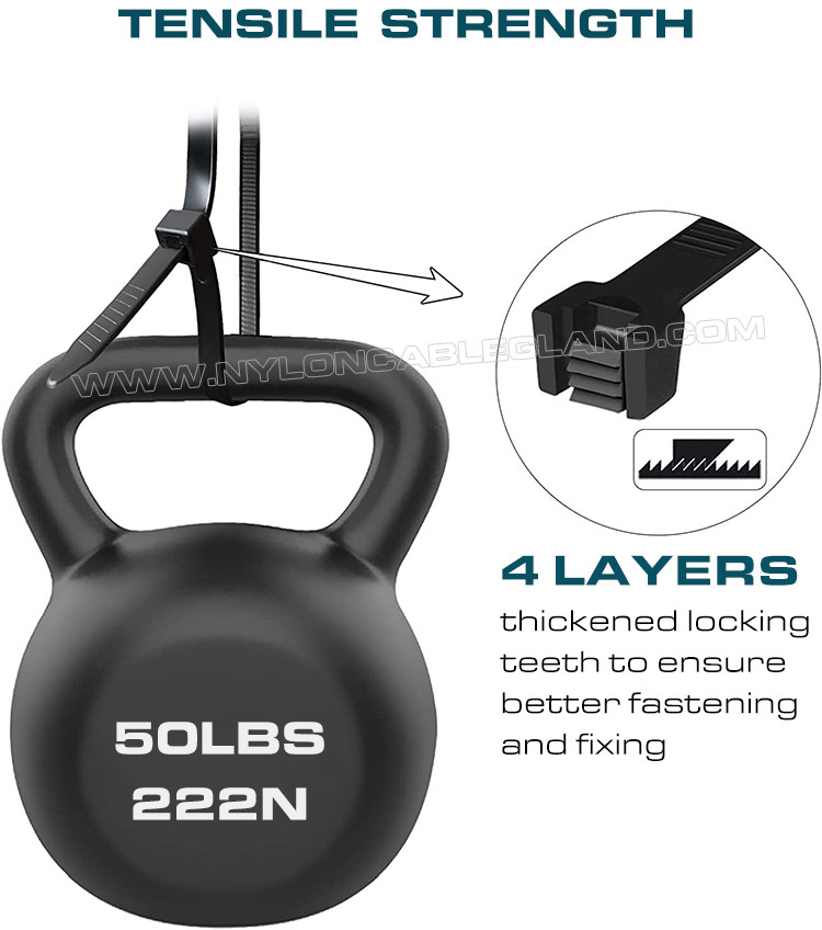 (3) Khả năng chịu tải mạnh: sử dụng vật liệu chống cháy polyamide 6.6 cường độ công nghiệp, có thể chịu được lực kéo lên đến 50 lbs, có khả năng chịu tải mạnh, chống lão hóa, chống axit, chống ăn mòn và độ bền.