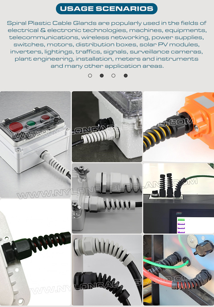 [Ứng dụng rộng rãi] Các ốc siết cáp giảm căng dạng xoắn ốc được sử dụng rộng rãi trong việc cố định cáp, kết nối hộp nối, bảng phân phối, tủ điện và các thiết bị điện khác. Tuyến cáp dễ lắp đặt mà không cần tháo rời.