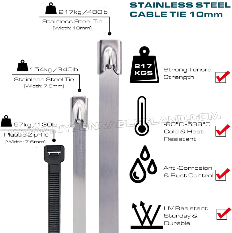 Dây buộc cáp thép không gỉ, còn được gọi là dây thít cáp kim loại, là một loại dây buộc được làm bằng thép không gỉ chất lượng cao. Loại phổ biến nhất là dây buộc cáp thép không gỉ với cơ chế khóa bi, với đầu bi được thiết kế thông minh cho phép buộc dễ dàng mà không cần dụng cụ.