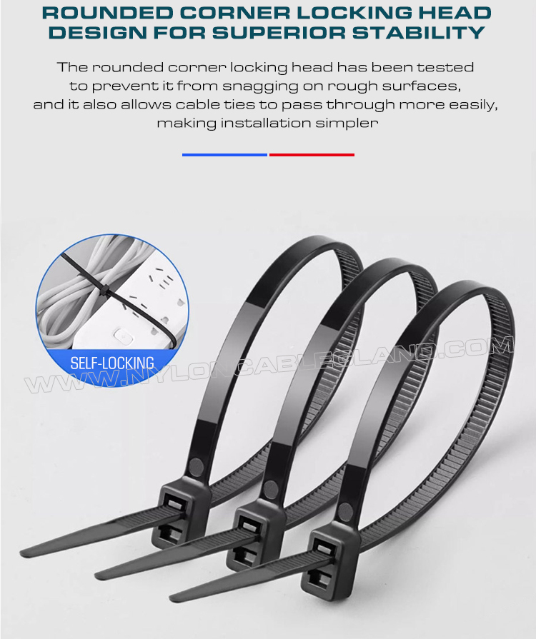(3) Nguyên liệu thô: Vật liệu polyamide 6.6 được chứng nhận UL được sử dụng, nó có thể được sử dụng trong môi trường từ -40℃ đến 85℃. Có khả năng chịu tải mạnh, chống lão hóa, chống axit, chống ăn mòn và độ bền cao.